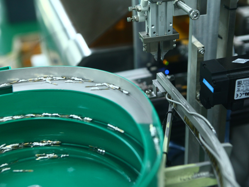 日精智能全自動(dòng)單頭焊錫插殼機(jī),支持散裝端子,機(jī)械手自動(dòng)上料。